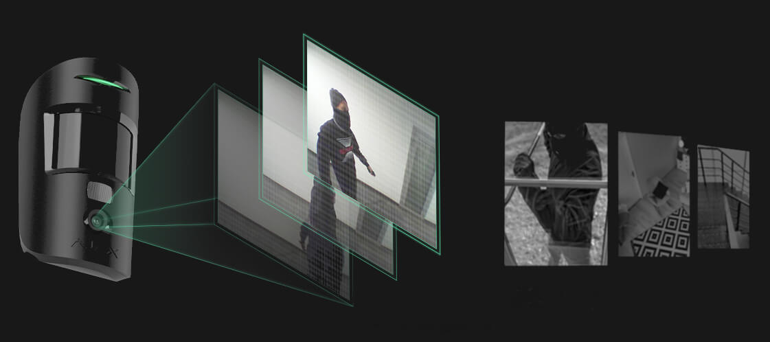 Le détecteur de mouvement AJAX MotionCam vous avertit via la centrale d'alarme sans fil AJAX HUB 2 et AJAX HUB 2 PLUS dès les premiers signes d'intrusion à la maison ou au bureau. De plus, lors d'une détection d'intrusion, il vous enverra des photos permettant la levée de doute et cela y compris en vision de nuit.
